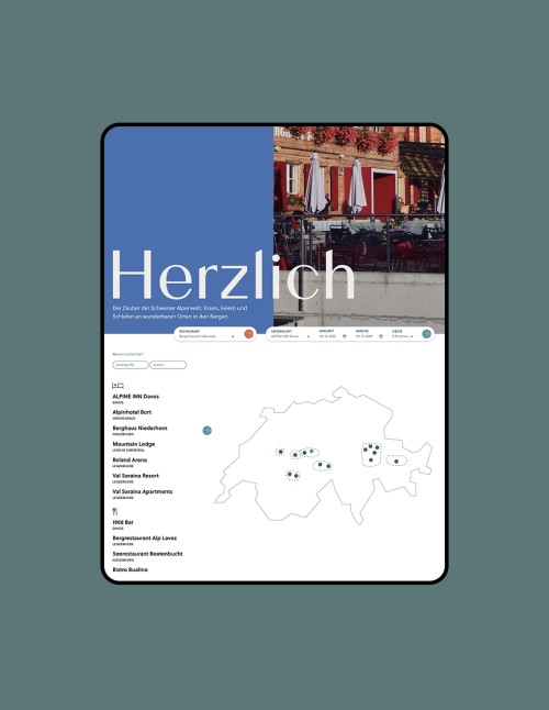 Um die Vielfalt der Hüttenzauber-Standorte übersichtlich zu präsentieren, haben wir eine interaktive Schweizerkarte gestaltet, auf der alle Regionen mit den jeweiligen Hotels und Restaurants durch klickbare Punkte markiert sind. Eine durchdachte Farbwelt erleichtert die Unterscheidung zwischen Hotel- und Restaurantangeboten, während direkte Verlinkungen zu den Detailseiten einen schnellen Zugang zu weiterführenden Informationen der einzelnen Standorte ermöglichen.